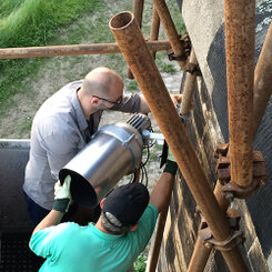 Zum Umfang der Planung gehörte es auch, anhand einer Probebefahrung eine Blendung der Schiffsführer auszuschließen. Alle notwendigen Einbauelemente in die denkmalgeschützte Brücke wurden detalliert geplant und mit den Denkmalschutz- und Stadtplanungsämtern abgestimmt.