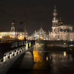Im Zuge der denkmalgerechten Instandsetzung der Augustusbrücke über die Elbe soll auch die öffentliche Beleuchtung auf der Brücke erneuert werden. Dabei soll einerseits die historische Lichtanmutung erhalten und andererseits die Anforderungen an die Straßenbeleuchtung nach DIN EN 13201 erfüllt und dabei die Immissionen für Schifffahrt und Naturschutz minimiert werden.